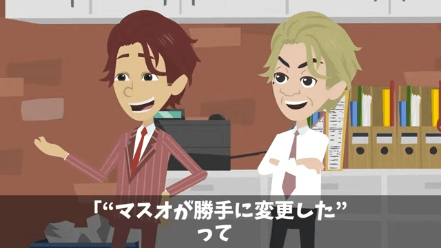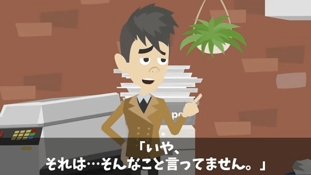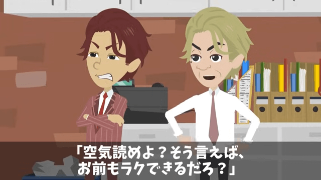 課長は後輩に、主人公が勝手に仕様変更をしたと言っていなかったかと尋ねました。 そこで後輩が「いや、それは…そんなこと言ってません」と否定すると、課長は「空気読めよ?」と後輩に迫り…。