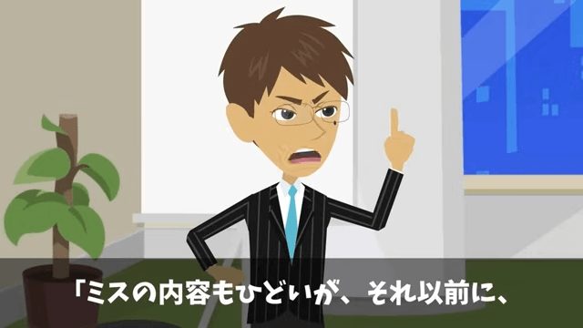 言い争いを始める課長と係長に、部長は「…いい加減にしろ!」と一喝しました。 そして部長は「ミスの内容もひどいが、現場を見ずに勝手に進めたその判断力が問題だ!」と怒ります。