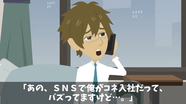 会議から数日が経ったころ、主人公がコネ入社だという話題がSNSでトレンド入りしていました。 そこで主人公は、社内で何が起きたのか部長に確認することにしたのです。