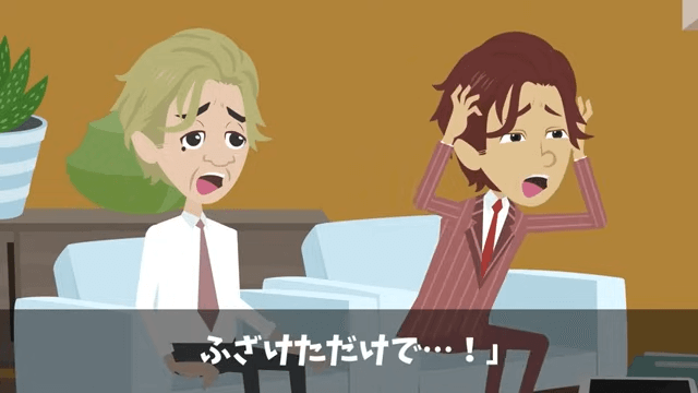 今回は『課長「義父の入院くらいで仕事を休むな!」俺「本当にいいの?」⇒義父の正体を明かした結果』を紹介します。 課長が「俺、もう課長じゃなくなるんですか!?」と言うと、義姉は「はい。課長でもなければ、うちの社員でもないです」と言い放ちました。 すると係長が「俺、どうすればいいんですか!?こんなの冗談だったんですよ!」と慌て始めて…。