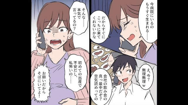 今回は『私「もうすぐ産まれる!今すぐ帰ってきて!」夫「急すぎだし会社の飲み会だから無理(笑)」⇒飲み会を優先した結果』を紹介します。 職場の同期である夫と長い間交際し、結婚した主人公。 いつも明るいムードメーカーの夫は、飲み会が大好きで…。