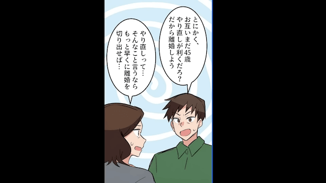 主人公が結婚20周年の旅行を提案すると、夫は「お前との生活は飽きたんだ」と言い、離婚を迫ってきました。 驚いた主人公が「そんなこと言うならもっと早くに離婚を切り出せば…」と伝えると、夫は息子の成長を待っていたと言い…。