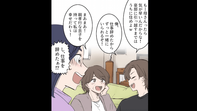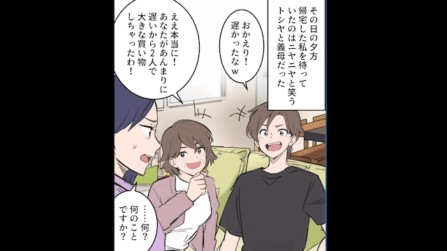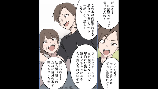ある日、知らない番号からの電話でとんでもない事実を知らされた主人公。 そして主人公が帰宅すると、夫がニヤニヤと笑いながら「母さんに家買っちゃった」と報告してきたのです。