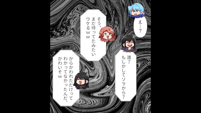 数時間経っても先輩たちが店に来ないため、心配になって電話をした主人公。 すると先輩は「最初から行くつもりなかったわよ」と言い、だまされた主人公のことを笑いました。