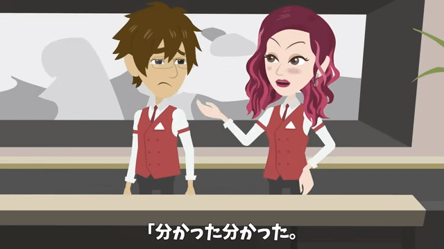 同僚は「さっさと裏方の仕事に就きたいものだわ」と言いました。 そこで主人公が裏方の仕事も大変であることを説明すると、同僚は「わかったわかった」と話を終わらせようとして…。