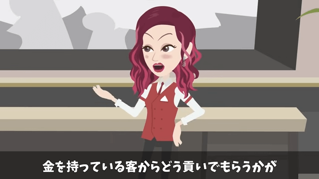 主人公がブランド物に詳しくないことを知ると、同僚は「接客業に向いていないんじゃない?」と言いました。 さらに同僚は「金を持っている客からどう貢いでもらうかが接客の醍醐味なのに」と笑い…。