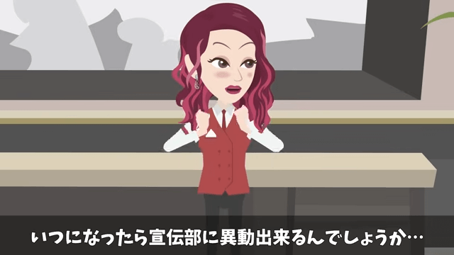 上司は「相変わらずいつも元気だね!お疲れ様」と同僚に声をかけました。 すると同僚は「いつになったら宣伝部に異動できるんでしょうか…」と上司に尋ねたのです。