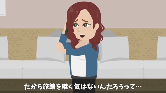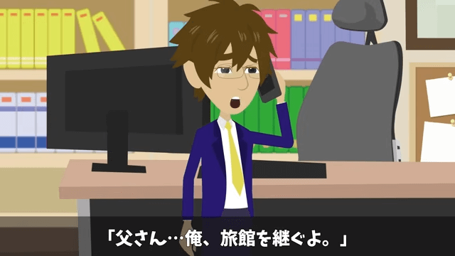 父は主人公が旅館を継ぐ気がないと考えていたようで、病気であることを主人公に言わないよう母に口止めをしていました。 しかしそれを聞いた主人公は「俺、旅館を継ぐよ」と宣言して…。
