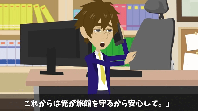 今回は『父から継いだ高級旅館で⇒元上司「キャンセルで(笑)」社員旅行100人分当日ドタキャンした結果』を紹介します。 父はホテルに就職した主人公のためを思い、病気であることを主人公に言わないよう母に口止めをしていました。 しかしそれを知った主人公は「俺、旅館を継ぐよ」と言い…。