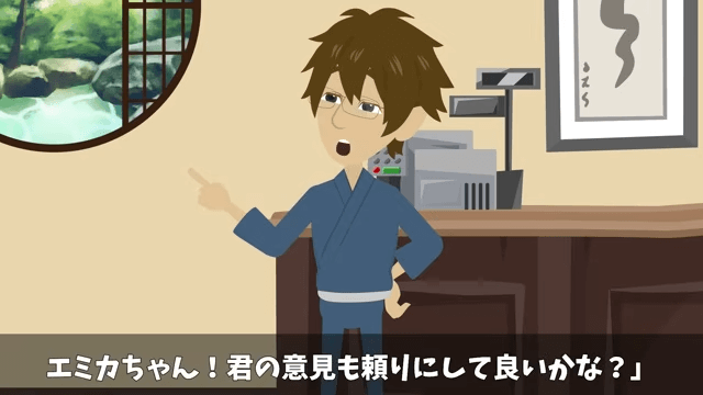 主人公は「古い旅館にしかできないことをするんだ!」と言いました。 そして主人公が従業員に「君の意見も頼りにしていいかな?」と尋ねると、従業員は「もちろんです!」と言ってくれたのです。