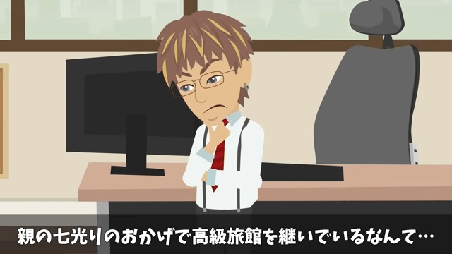主人公が高級旅館を継いだことを知った上司は気を悪くしました。 そして上司は「ちょっとしたイタズラ、してやろうか」と同僚に話して…。
