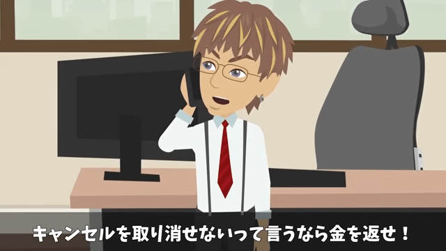 主人公はもう一度料金を支払い、予約してもらうしかないと上司に伝えます。 それを聞いた上司は「二重で料金を支払えっていうのか!そんなバカな話があるかよ!」と怒りました。