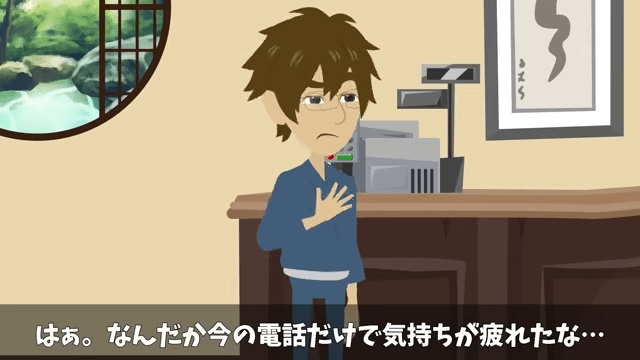 上司と電話で話した主人公はすっかり疲れてしまいました。 しかし今日も予約がたくさん入っているため、落ち込んでいる場合ではないと考えて…。