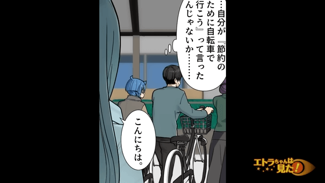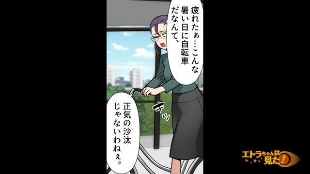 妻は「こんな暑い日に自転車だなんて、正気の沙汰じゃないわねぇ」と文句を言いながら、駐輪所に自転車をとめました。 するとそのとき、姉が「こんにちは」と主人公たちに声をかけてきて…。