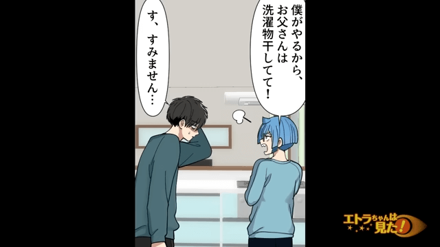 息子に怒られる主人公