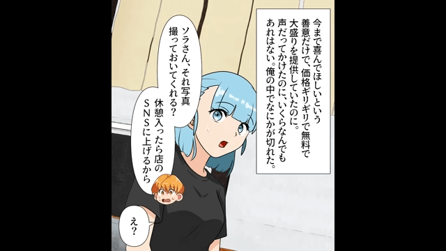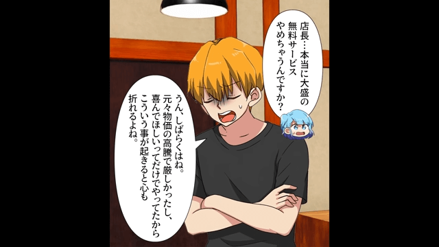 今回は『ラーメン店のサービスを仇で返したクレーマー客』を紹介します。 ラーメンの大盛を頼んだ社員がなかなか食べ終わらないため、主人公は声をかけようか迷っていました。 しかし社員は、主人公が忙しくなったタイミングを見計らってこっそり帰ったようで…。