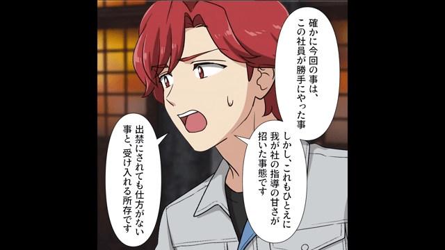 社長は社員が起こした行動について、主人公に謝罪しました。 すると主人公は「俺はただ、誠意ある言葉が欲しかっただけなんです」と社長に伝えて…。
