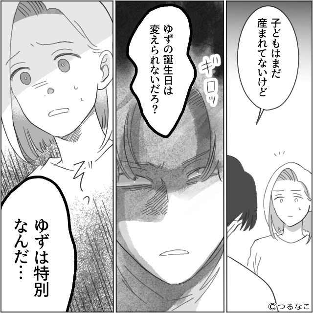 出産予定日が義妹の誕生日付近になり、嫌な予感がする主人公。 夫に報告すると、夫は「産む日をずらしてよ」と信じられない発言をしました。