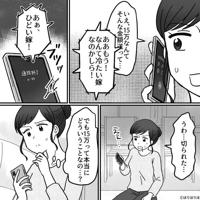 その発言を聞いた主人公は「15万って本当にどういうことなの?」と困惑するのでした。