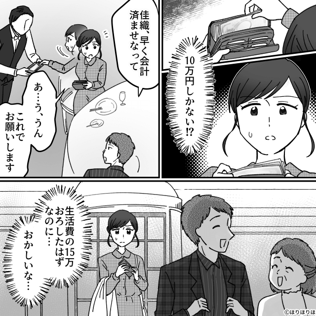 今回は『毎月10万円の仕送りを「少ない!」という強欲義母の末路』を紹介します。 義母との食事会で、お会計を任された主人公。 不満に思いながらも自分の財布を開いた主人公は、あることに気づき…。