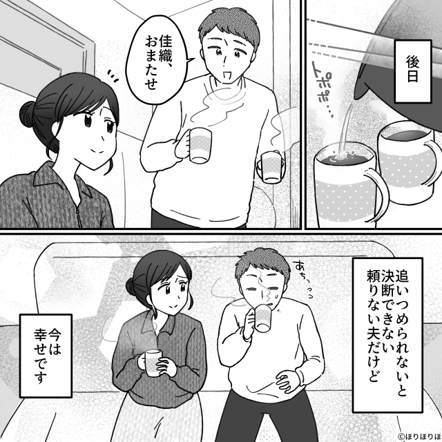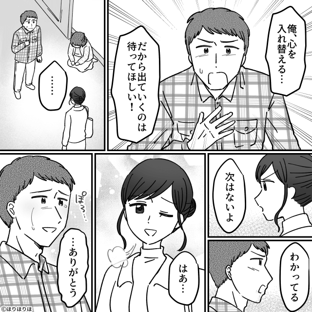 その映像を見て夫が心を入れ替えたため、主人公は今回だけは夫を許すことにしたのでした。