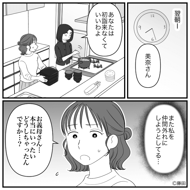 そして翌朝、義母がまたも主人公を仲間外れにしようとしたため、主人公は「どうしちゃったんですか…?」と聞き…。