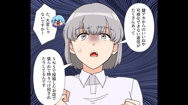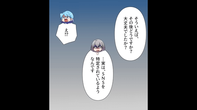 騒動から数日後、女性は書店までお礼を言いに来てくれました。 しかし主人公が話を聞くと、女性はまだ男性からつけ回されているようで…。