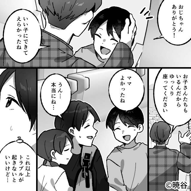 主人公は助けてくれた男性に感謝し、ホッとするのでした。