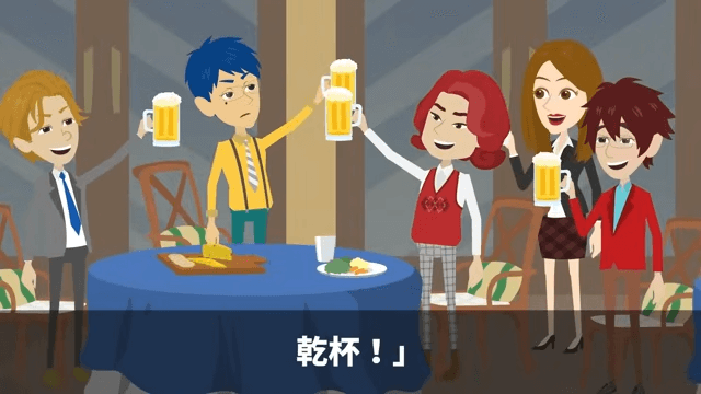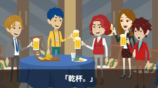 主人公が本社に戻ってから1週間後、懇親会が開催されました。 そして課長が乾杯の音頭を取ると、課長たちは主人公のグラスをよけて乾杯したのです。