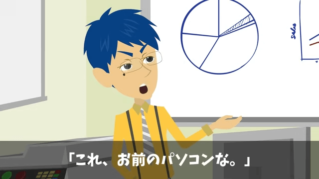 課長は主人公に、とても古いパソコンを渡しました。 するとそれを見た社員が「うわ、それ相当古い型じゃないですか」と笑い…。