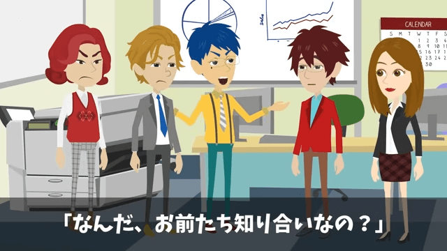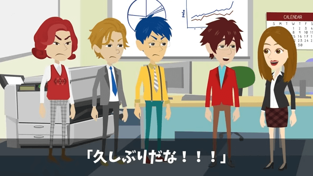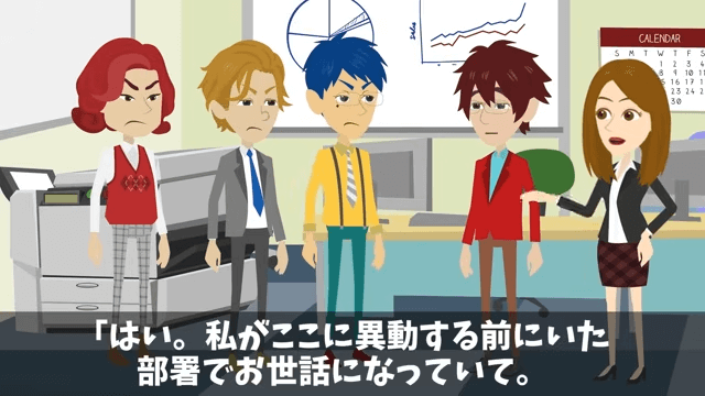 女性社員は主人公に「ご無沙汰してます」と挨拶をしました。 すると課長が「なんだ、お前たち知り合いなの?」と言ったため、女性社員は前にいた部署で主人公に世話になったことを話したのです。