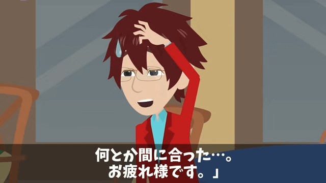 会議室の掃除をしていた主人公は急いで懇親会の会場に向かい、何とか間に合いました。 そして課長に「お疲れ様です」と言ったのですが、課長は黙ったままで…。
