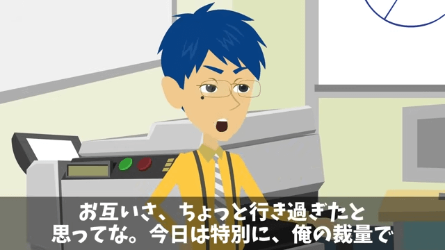 今回は『会社の懇親会で…「お荷物は飯抜き!」社員全員に無視されたので退職した結果』を紹介します。 主人公のもとにやってきた課長は「ヒートアップした後での行動って後悔することが多いだろ?」と言いました。 それに対し主人公が「はあ」と言うと、課長は「今回の件、俺たちも悪かった」と言い…。