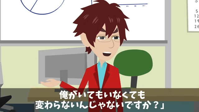 社長に怒られて挽回しに来たのだろうと課長に指摘した主人公。 さらに主人公は、これまでずっと無視をしていたのだから自分がいてもいなくても変わらないはずだと話し…。