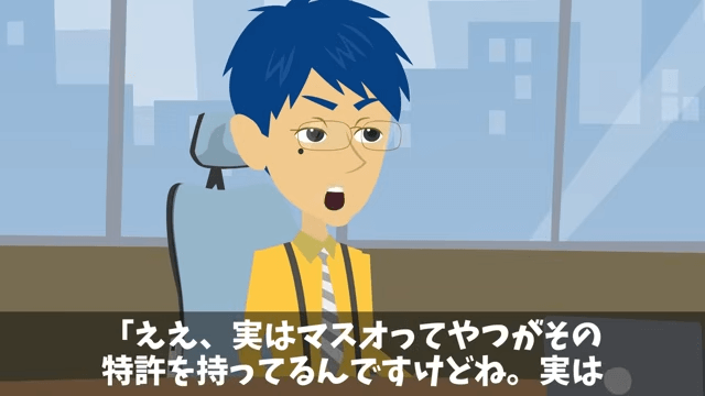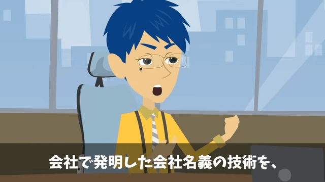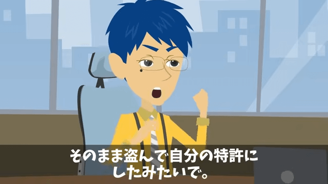 顧客は心配そうな様子で「特許の関係で受注止めてるって聞きましたよ」と課長に言います。 すると課長は、主人公が会社名義の技術を盗んだと嘘の説明をしました。