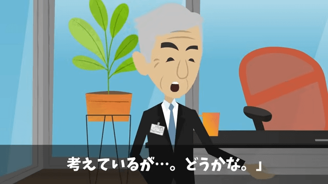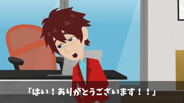 社長は主人公に教育的側面でも会社を支えてほしいため、課長になってほしいと頼みます。 それを聞いた主人公は「はい!ありがとうございます!」と社長に頭を下げました。