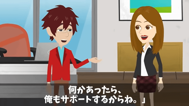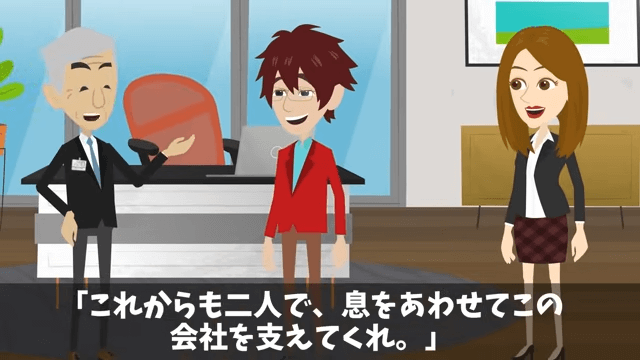 主人公の後押しもあり、女性はプロジェクトリーダーになることを引き受けます。 そして社長は「これからも2人で、息をあわせてこの会社を支えてくれ」と主人公たちに伝えたのでした。