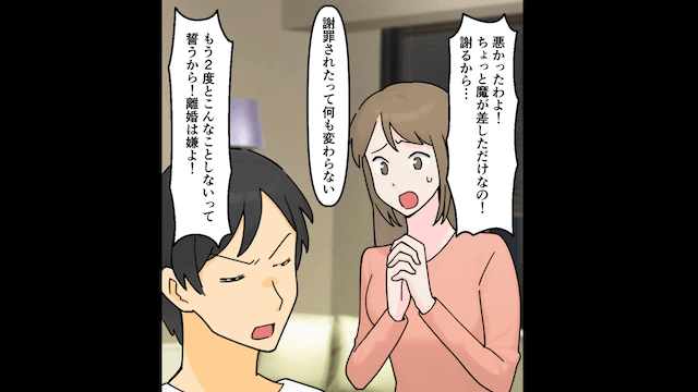 妻が常連客に連絡先を渡しているのを見かけた主人公は、その後、妻の浮気現場に遭遇。 主人公が離婚を突きつけると、妻は必死に主人公に謝罪をしてくるのでした。