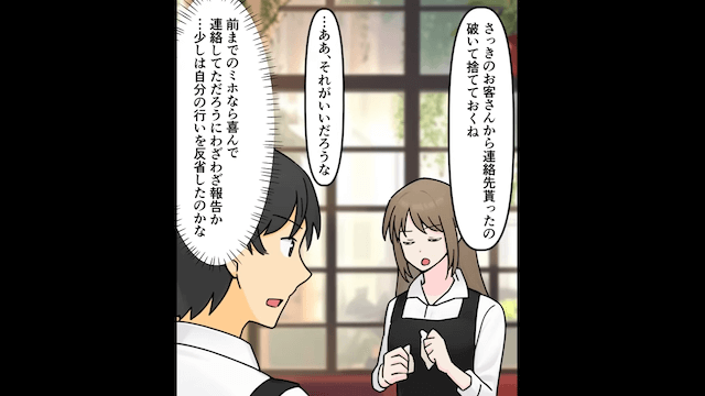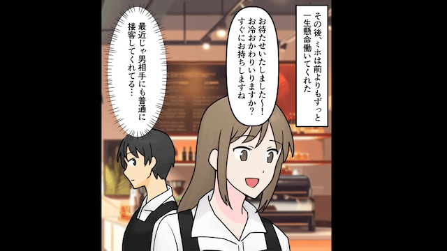 主人公が両親に妻の浮気を暴露すると、両親はショックを受け、妻とはしばらく距離を置くことに決めました。 その後、妻は男性の客に色目を使うことがなくなり、反省したかのように見えたのですが…。