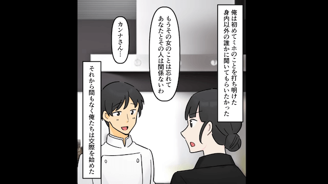 すでに離婚届を提出済みであることを妻に告げ「自分の罪をそこで償うべきだ」と言い放った主人公。 その後、妻の逮捕によって店を閉めた主人公は転職し、そこで彼女ができました。