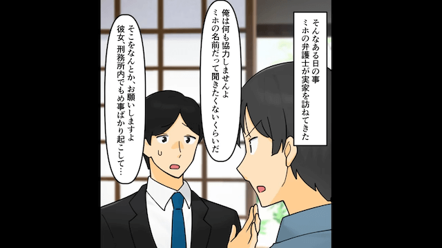 そんなある日、妻に手を焼いた妻の弁護士が主人公に面会をお願いしてきたため、主人公は彼女と一緒に妻のもとに向かい…。