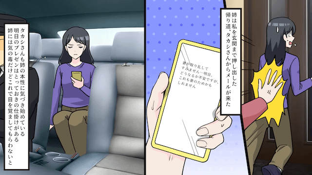 主人公が「それじゃ約束が違うわ」と言って姉の指示を拒否すると、姉は激怒して主人公を家から追い出し…。