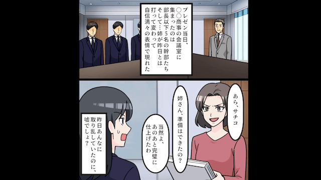今回は『社長の私に…姉「仕事をくれない?」⇒恩をあだで返した女の末路』を紹介します。 急に自信がなくなったのか、プレゼンを主人公に押しつけようとしてきた姉。 主人公がそれを拒否すると、姉は激怒して主人公を家から追い出したのでした。