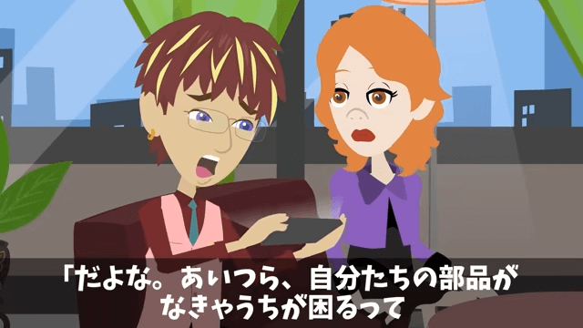 主人公は中小部品メーカーで技術開発部長をしています。 主人公たちは特許技術を持っており、今日はその独占ライセンス契約の更新日だったのですが…。