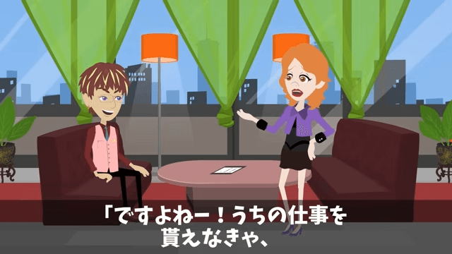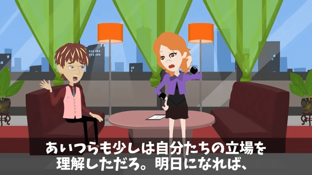 課長は明日になれば主人公が泣きついてくるはずだと話します。 それを聞いた女性社員は「ですよねー!」と同意しました。
