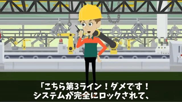主人公は「ゆっくり休んで、明日、胸を張って出社してくれ」と部下に伝えました。 そして翌朝、取引先の工場ではシステムが完全にロックされてしまい…。