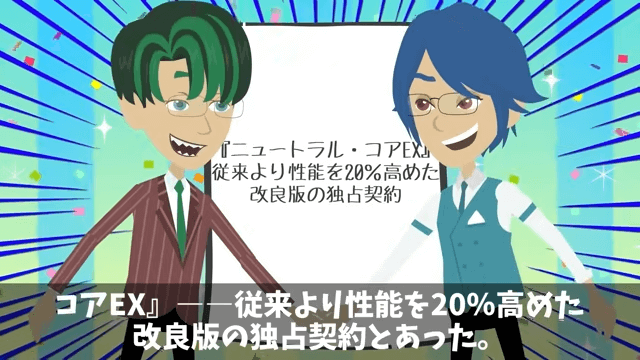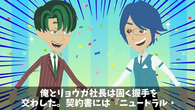 主人公は新興メーカーの社長と固く握手を交わし、契約を結びました。 実はこれが主人公が1ヶ月前から仕込んでいた保険だったのです。