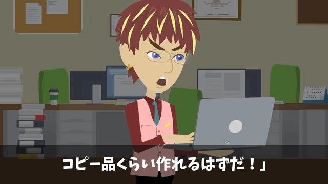 課長は主人公の会社が提出した初期型の設計データを使い、コピー品を作ろうと考えました。 自分の保身のためならば、犯罪行為も厭わないのが課長の本性だったのです。