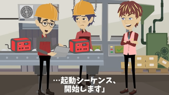 作業員は異常なエネルギー反応が出ているから危険だと課長に伝えます。 しかし課長は聞く耳を持たず強引に稼働テストを始め、試作品は青白い光を放ちました。