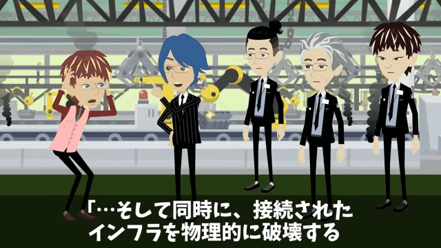 主人公はデータに特殊なプログラムを組み込んでいたことを課長に説明します。 そして、その結果としてインフラが物理的に破壊されることになったと課長に伝えました。